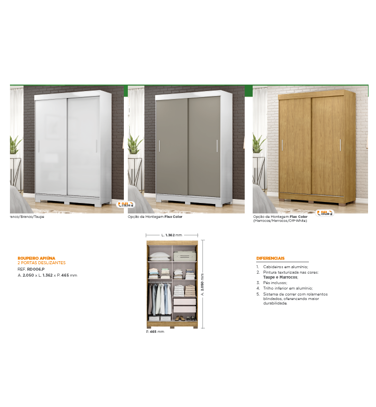 Roupeiro Apiúna 02 Portas de Correr 136 | RD006.P | MX Móveis