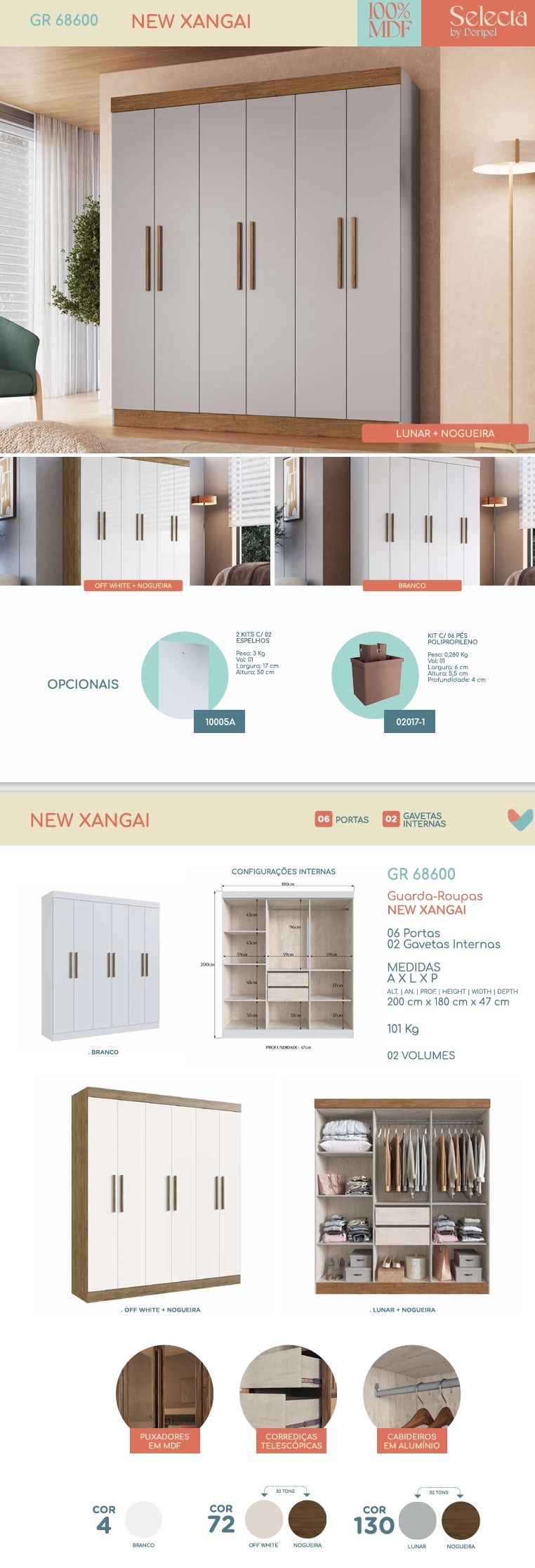 PREÇO + BARATO DO BRASIL | Roupeiro Santiago c/ Espelho | L 1.83 | Rud Rack