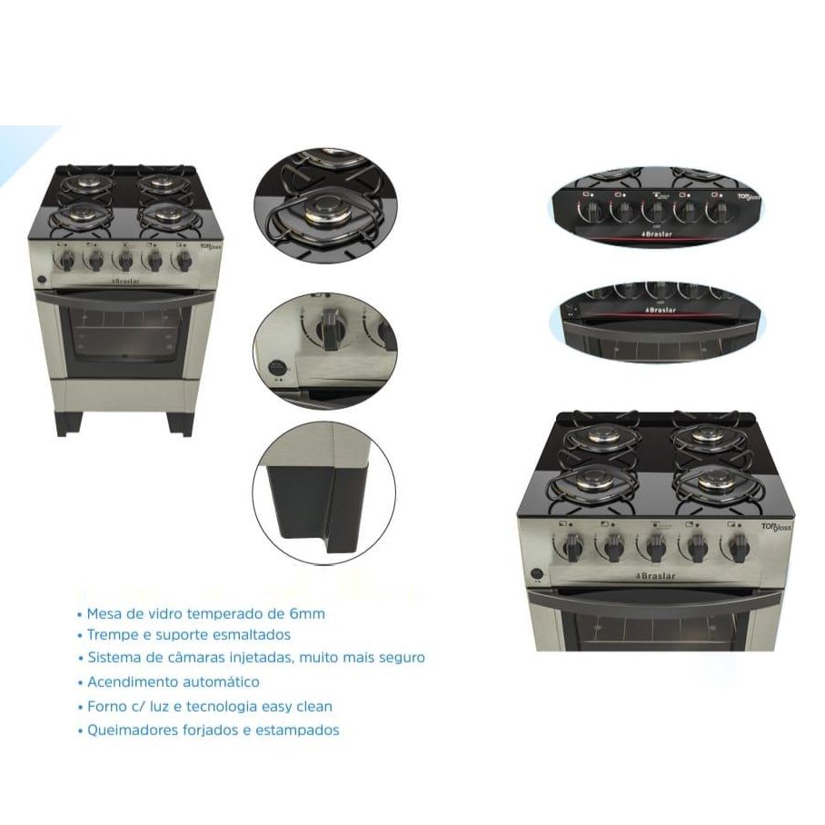 Fogão A Gás Top Glass Plus C/ Ascendimento | 4 Bocas | Braslar