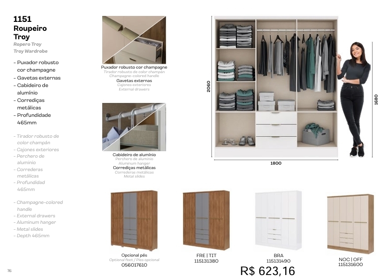 Roupeiro Troy 180 | 1151 | Carraro | Venda: +60% 0925