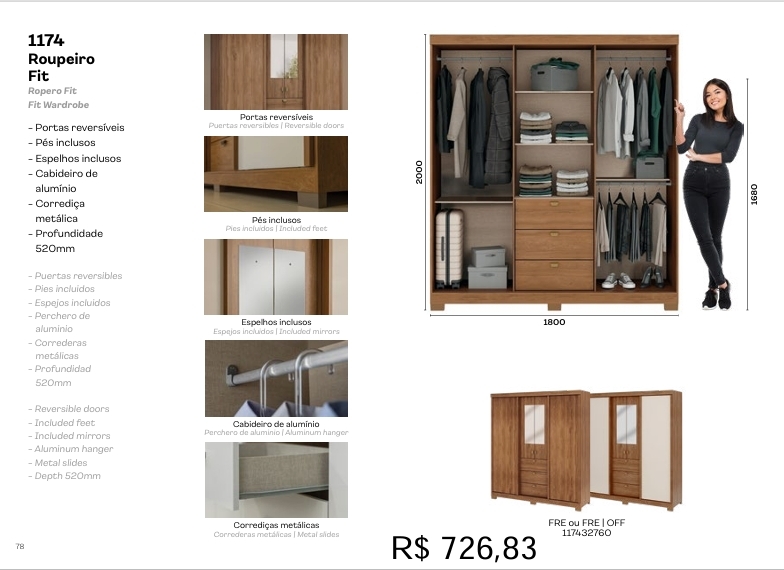 Roupeiro Fit 180 | 1174 | Carraro | Venda: +60% 0925
