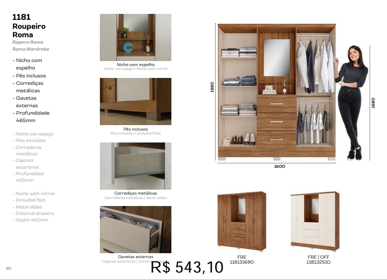 Roupeiro Roma 160 | 1181 | Carraro | Venda: +60% 0925