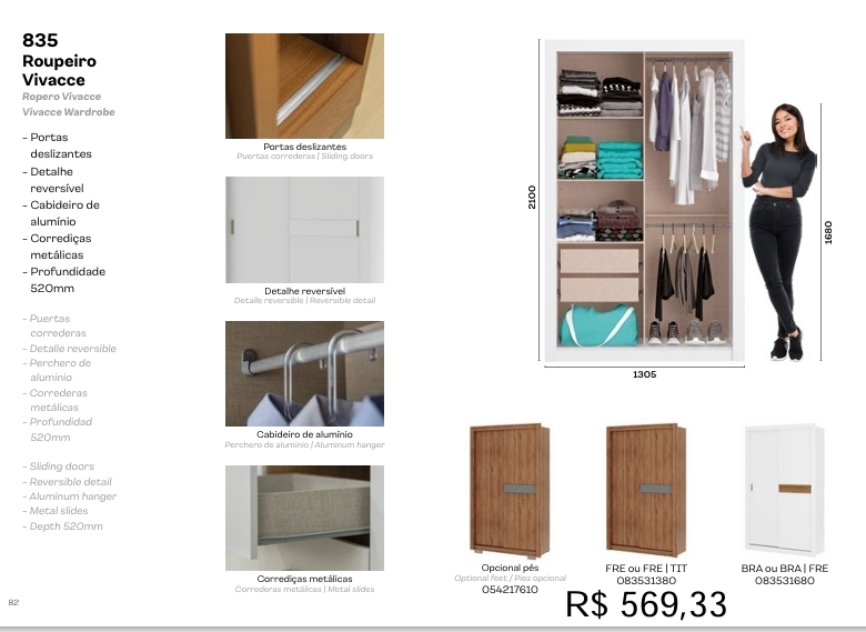 Roupeiro Vivacce 130 | 835 | Carraro | Venda: +60% 0925
