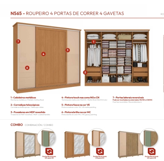 Roupeiro 4 Portas | N565 | Kappesberg Móveis 0226 S/Espelho R$2295,00 e Versão C/Espelho R$2785,00