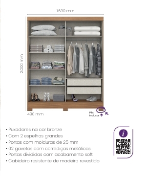 Roupeiro c/ Espelho B74 1.630 | Briz 0326