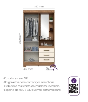 Roupeiro c/ Espelho B64 1.100 | Briz 0326