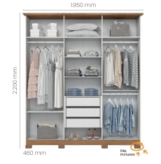 *A. 2.200 x L. 1.950 x P. 460 mm.**Espelho opcional, consulte valores e tamanhos.*