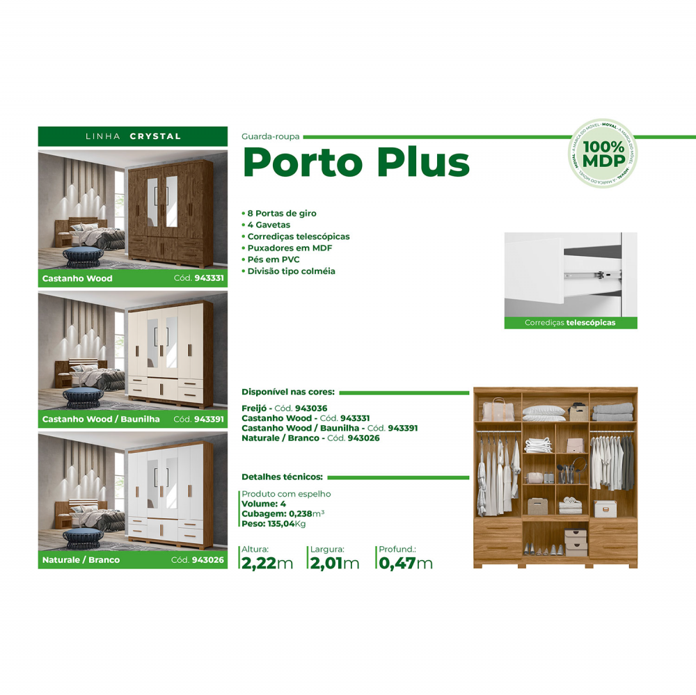 PREÇO + BARATO DO BRASIL | Roupeiro Porto Plus 8 Portas E 4 Gavetas | L 2,01 | Moval