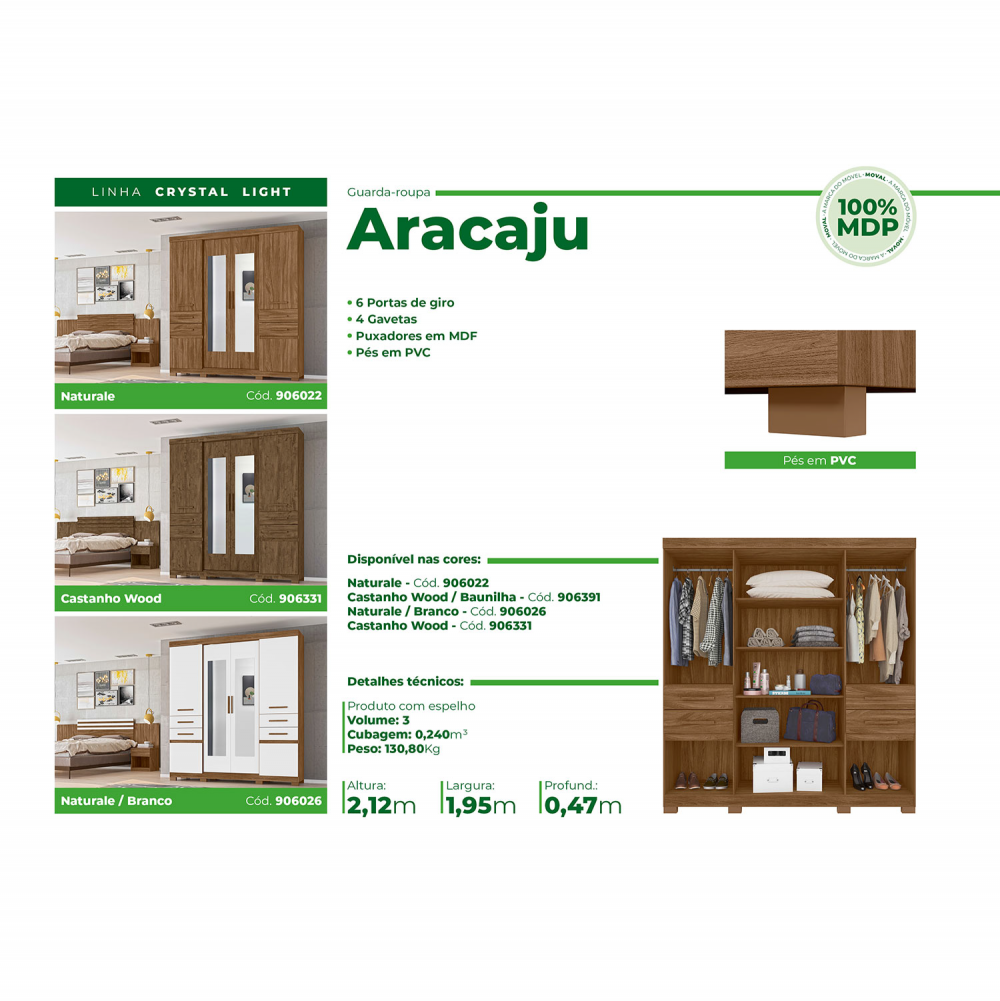 PREÇO + BARATO DO BRASIL | Roupeiro Aracajú 6 Portas E 4 Gavetas | L 1,95 | Moval