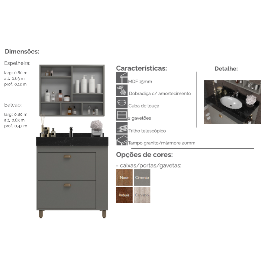 Conjunto Gabinete E Espelheira Amsterdãm 80 | Belizze