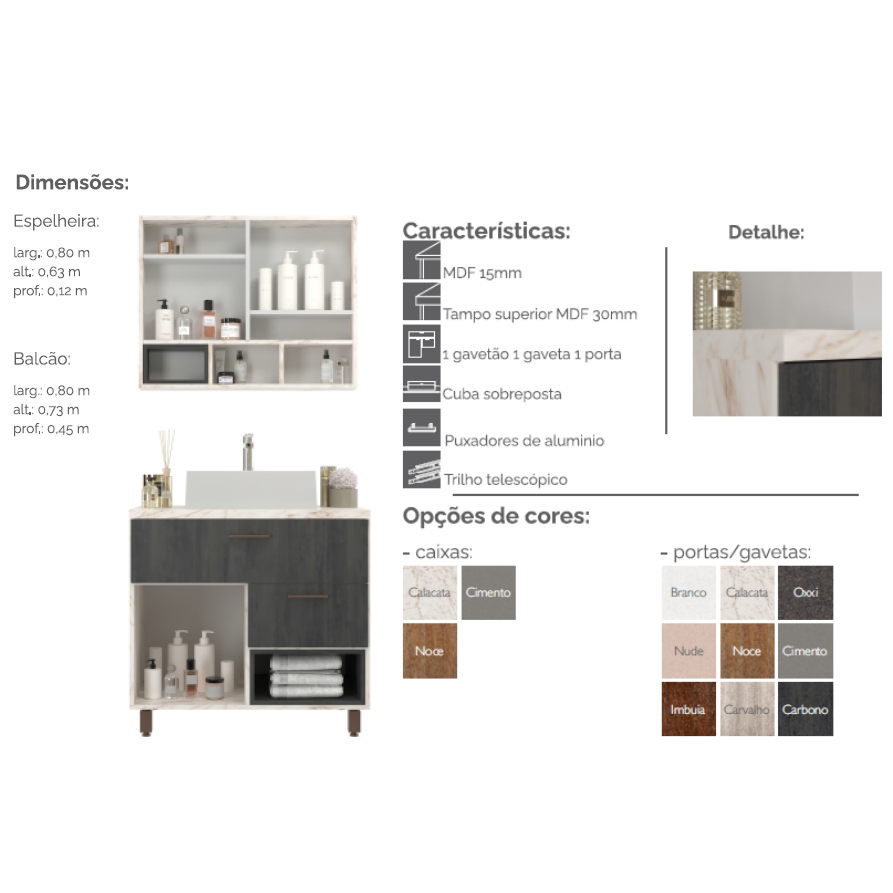 Conjunto Gabinete e Espelheira Denver 80 | Belizze