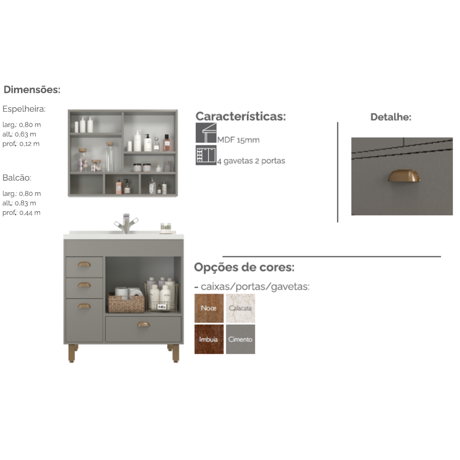 Conjunto Gabinete E Espelheira Amsterdãm 80 | Belizze
