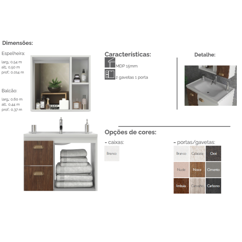 Conjunto Gabinete e Espelheira Búzios 60 Suspenso | Belizze