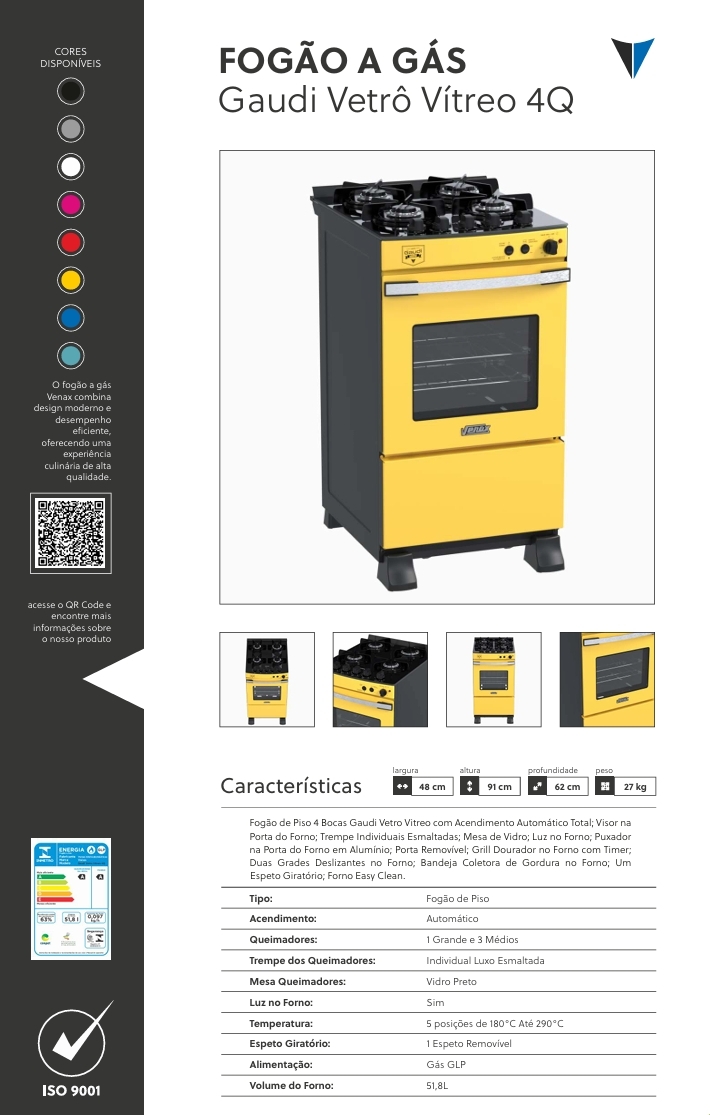 Fogão a Gás | Gaudi Vítreo | Venax 0525