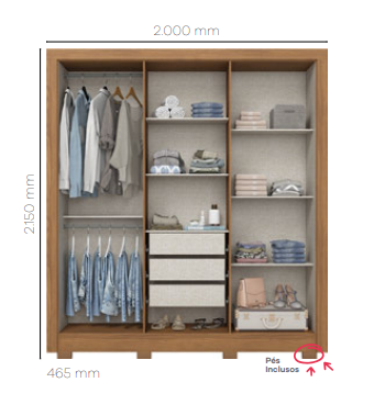 * Dimensões: A. 2.150 x L. 2.000 x P. 465 mm. *