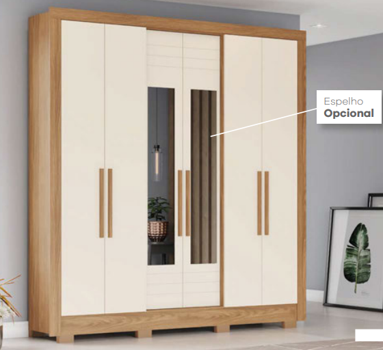 Roupeiro c/ 06 Portas c/ Espelho B366 200 | Briz
