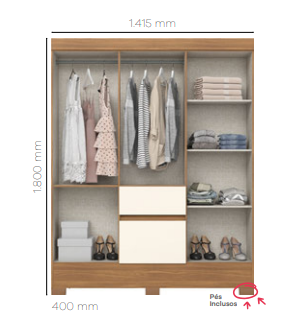 * Dimensões: A. 1.800 x L. 1.415 x P. 400 mm. *