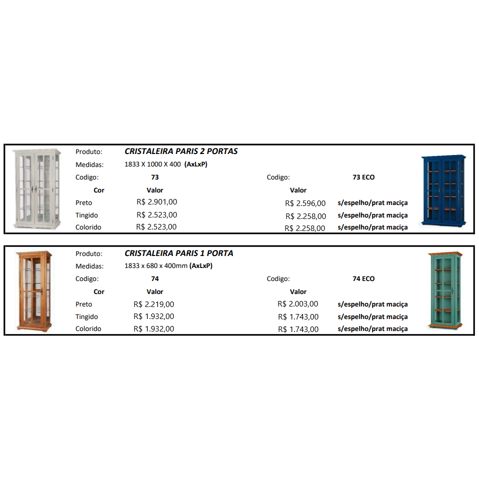 PREÇO + BARATO DO BRASIL | Cristaleiras Paris | MB Sul
