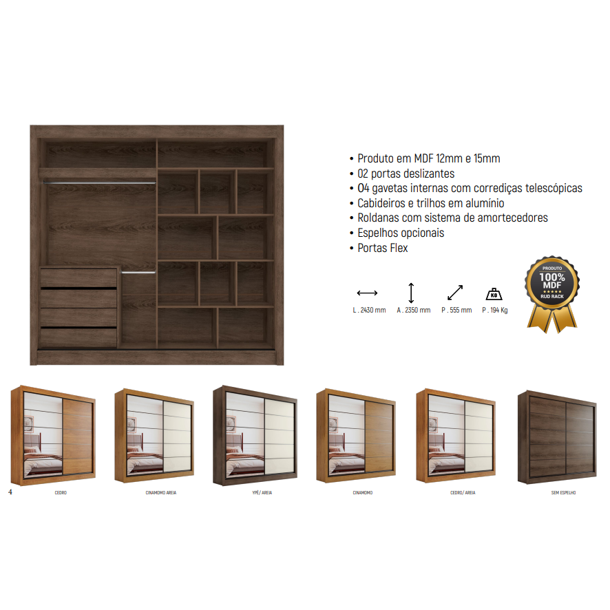 PREÇO + BARATO DO BRASIL | Roupeiro Blumenau c/ Espelho | L 2.43 | Rud Rack