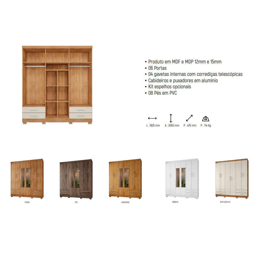 Roupeiro Ilhéus 04 Portas c/ Espelhos | RG008.E | MX Móveis