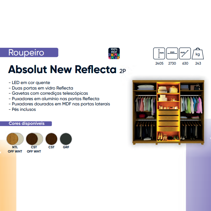 PREÇO + BARATO DO BRASIL | Roupeiro Absolut New Reflecta | L 2.73 | Gelius