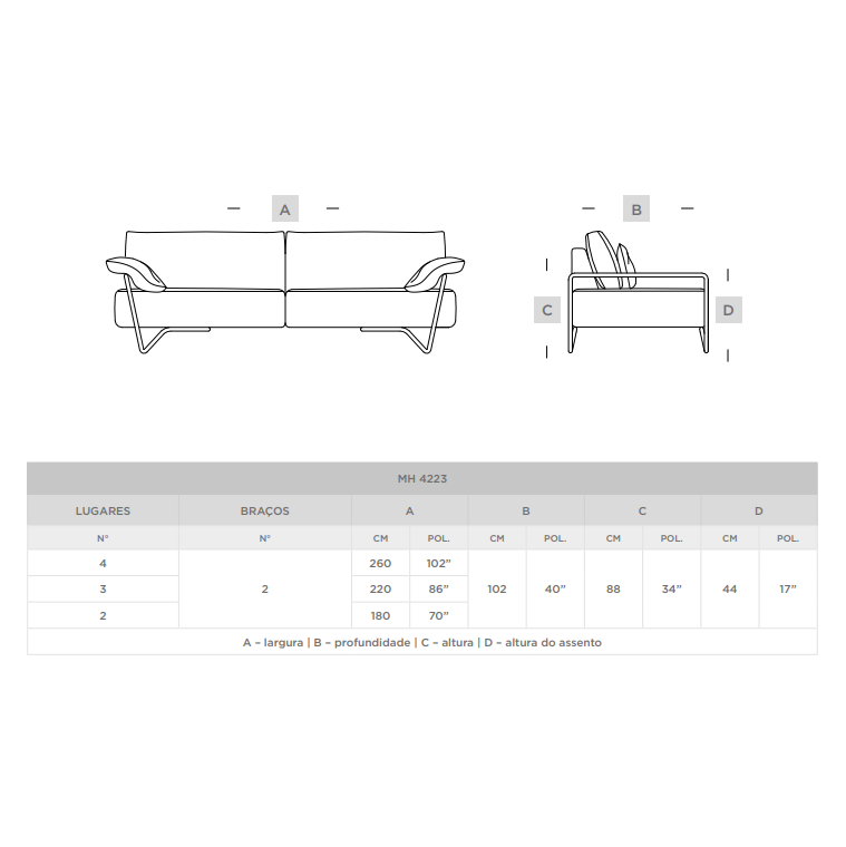 * Consulte a cartela de cores e tecidos disponíveis.*