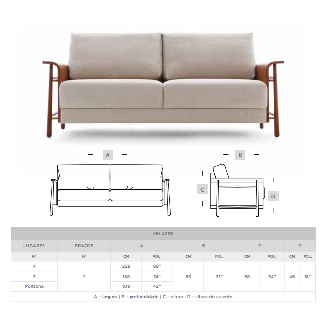 * Consulte a cartela de cores e tecidos disponíveis.*