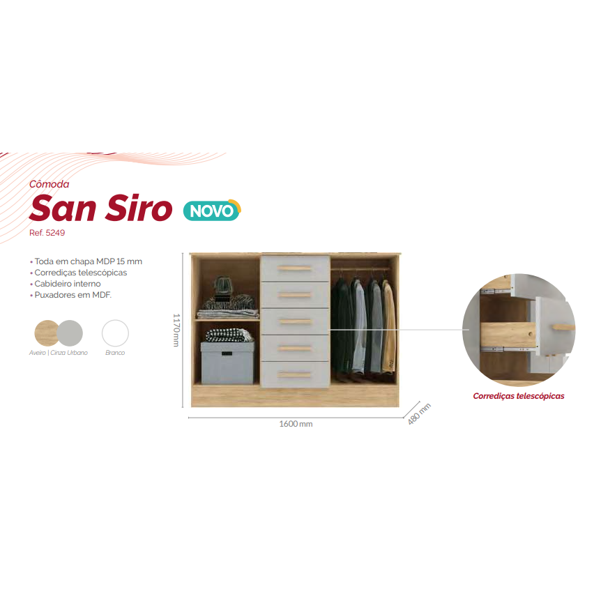 PREÇO + BARATO DO BRASIL | Cômoda San Siro | L 1.60 | 5249 | Móveis Sul