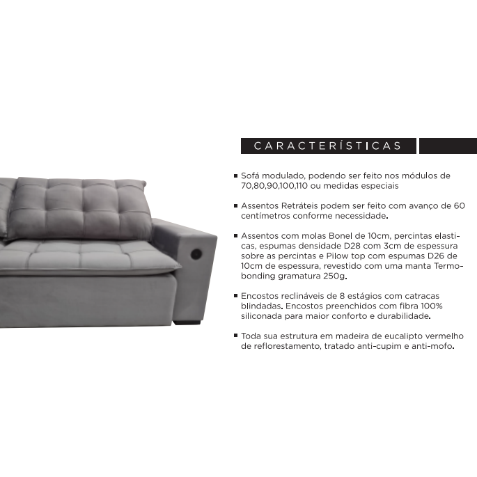 * Consulte a cartela de cores e tecidos disponíveis.*
