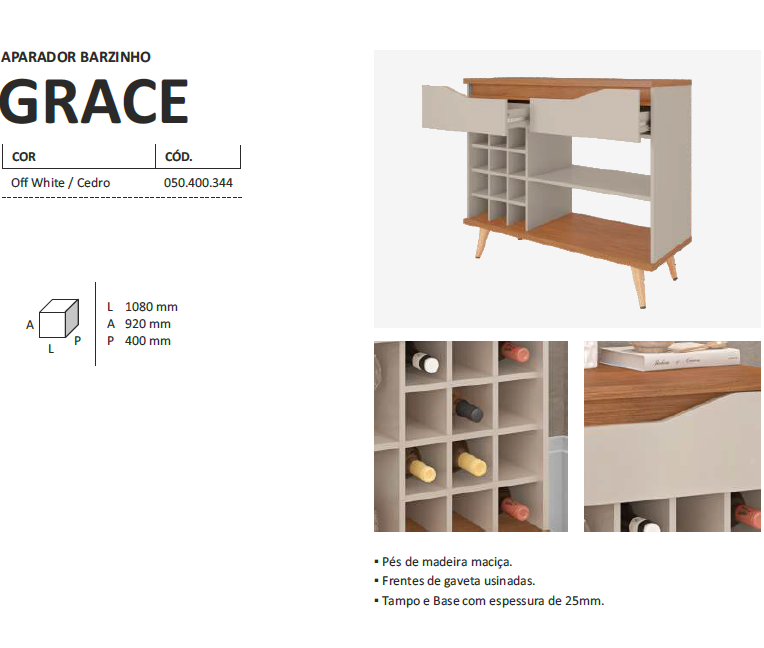 PREÇO + BARATO DO BRASIL | Aparador Barzinho Grace 1,08 | Casa D