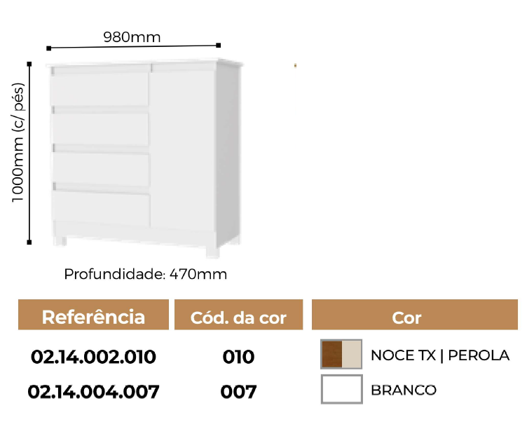 PREÇO + BARATO DO BRASIL | Cômoda Bout c/ 4 Gavetas | L 0.80 | ACN