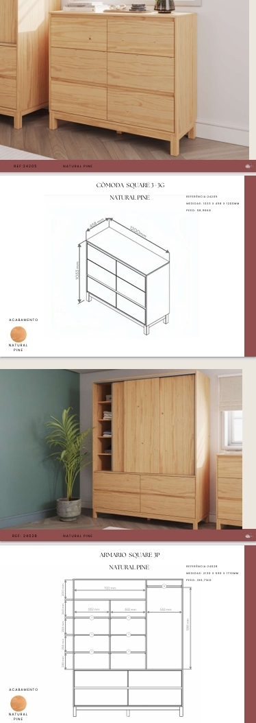 Linha Square | 24028 - 24205 - 24156 -24098 | Móveis de Madeira 0825