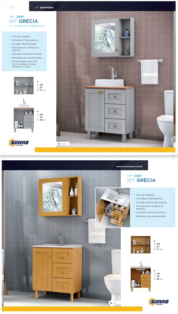 Conjunto De Banheiro | 2544 - 2545 - 2539 - 2699 - 2538 | Sonne Móveis 0825