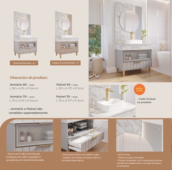 Conjunto Gabinete e Espelheira Atenas 60 | Belizze