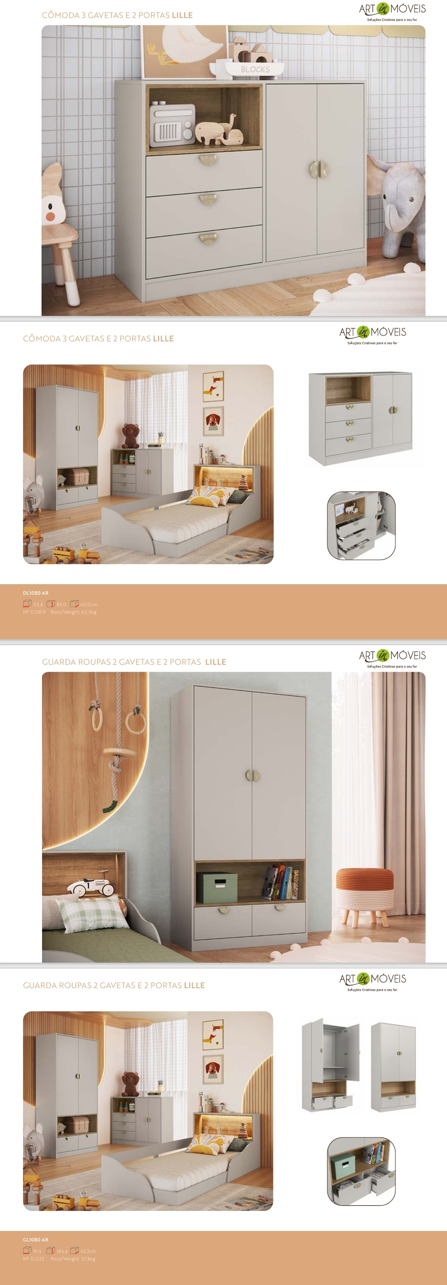 Linha Lille | CL1080 - CL1090 - CL1140 - CL1150 - DL1020 -DL1060 - DL1080 - GL1080 | Art in Móveis 0825