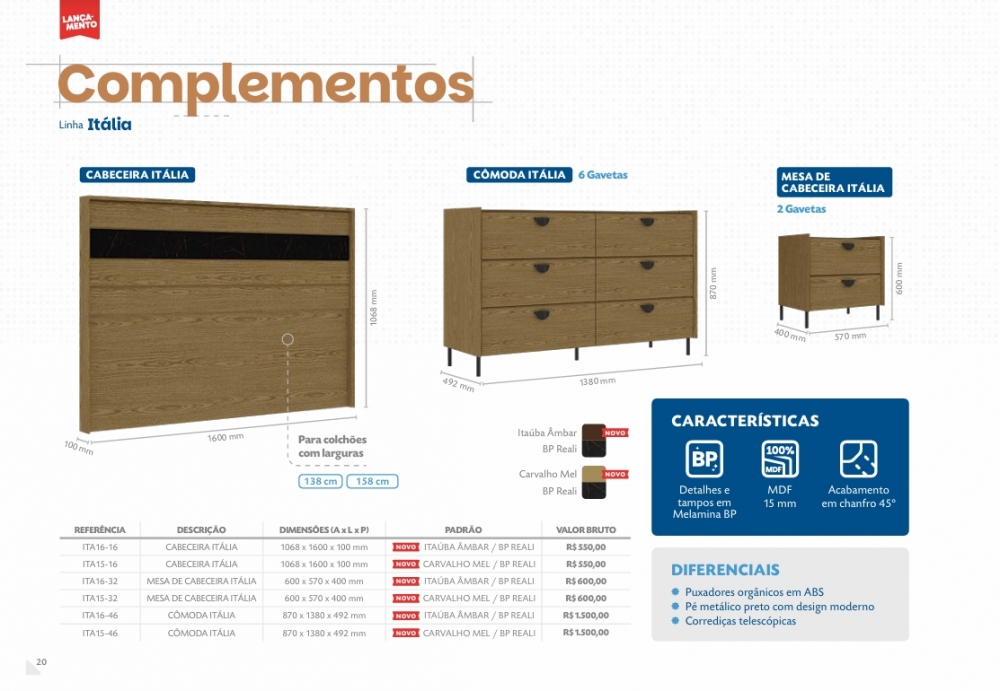 Complementos Linha Itália | Cabeceira Itália 160 - Cômoda Itália - Mesa de Cabeceira Itália | Primavera | Venda: -35% 0925