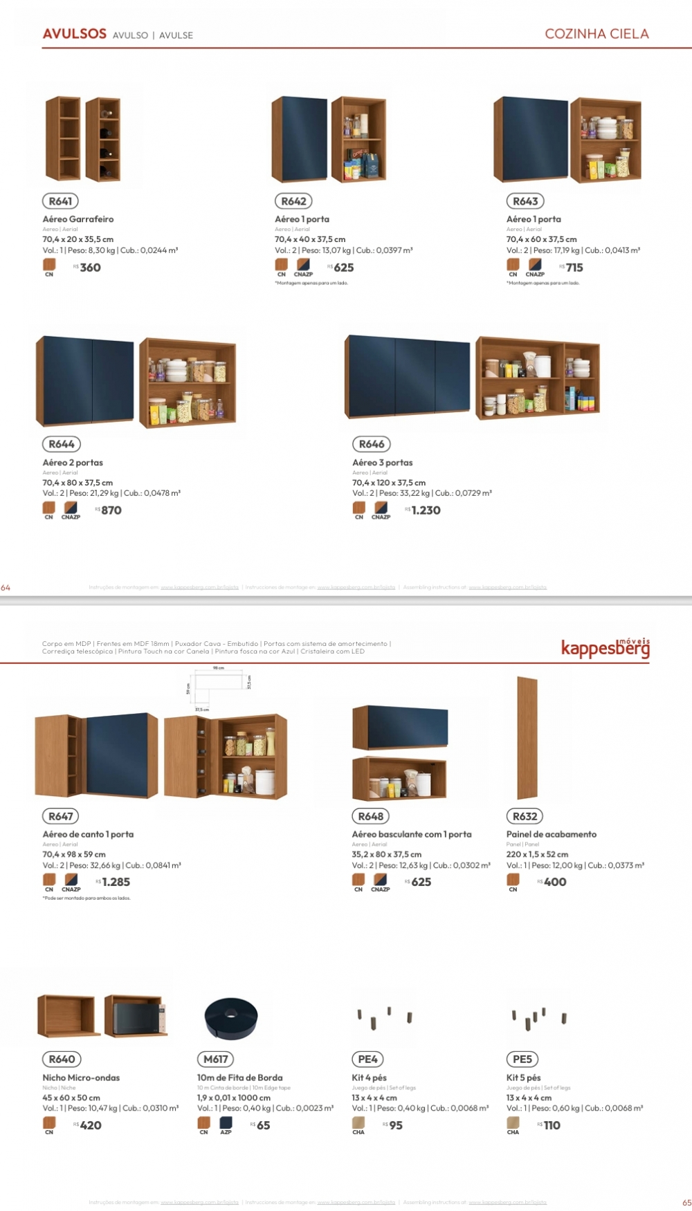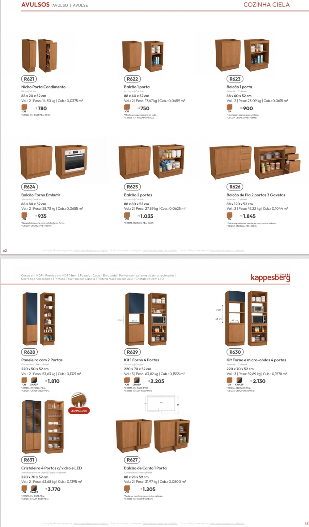 Linha Cerejeira MD1 | Kits Cozinha | 847 4 - 847 45 - 853 4 - 853 45 - 800 4 | Venda: -70 % | Mayer 0525