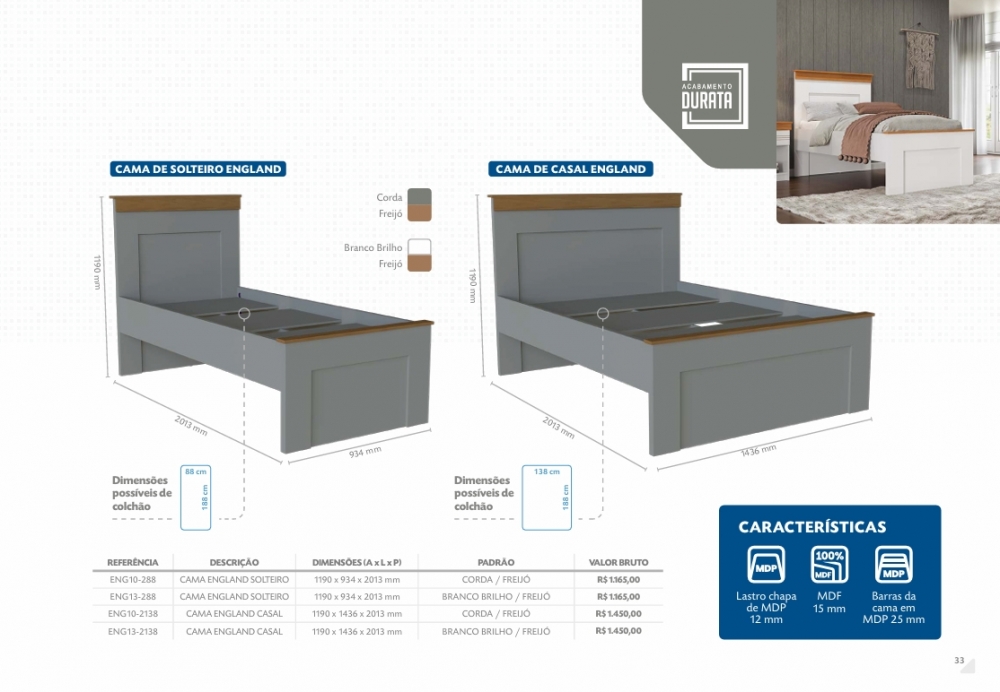 Complementos Linha Englad | Cômoda - Mesa de Cabeceira - Cama de Casal e Solteiro | Primavera | Venda: -35% 0925