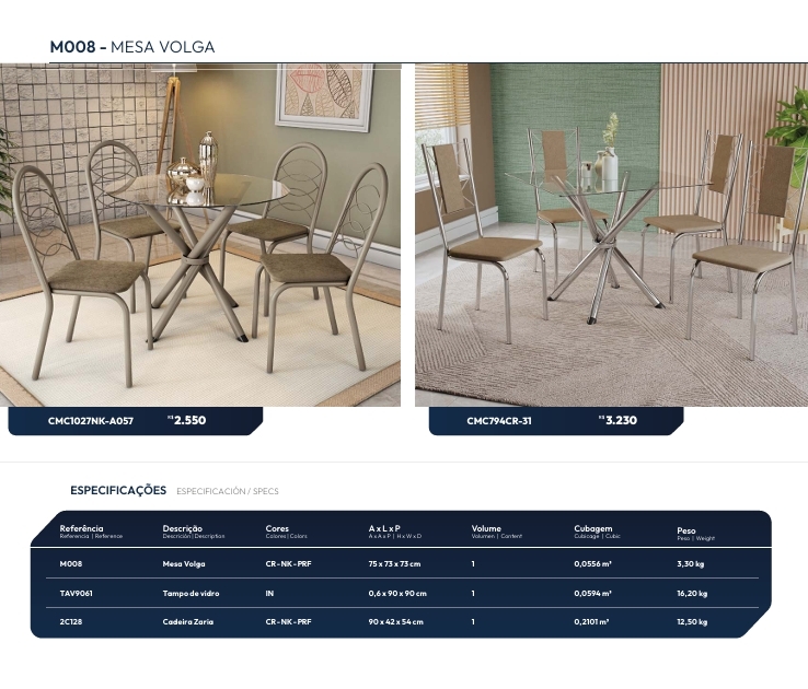 Mesa Volga | Venda:-62% | Kappesberg Crome 0925