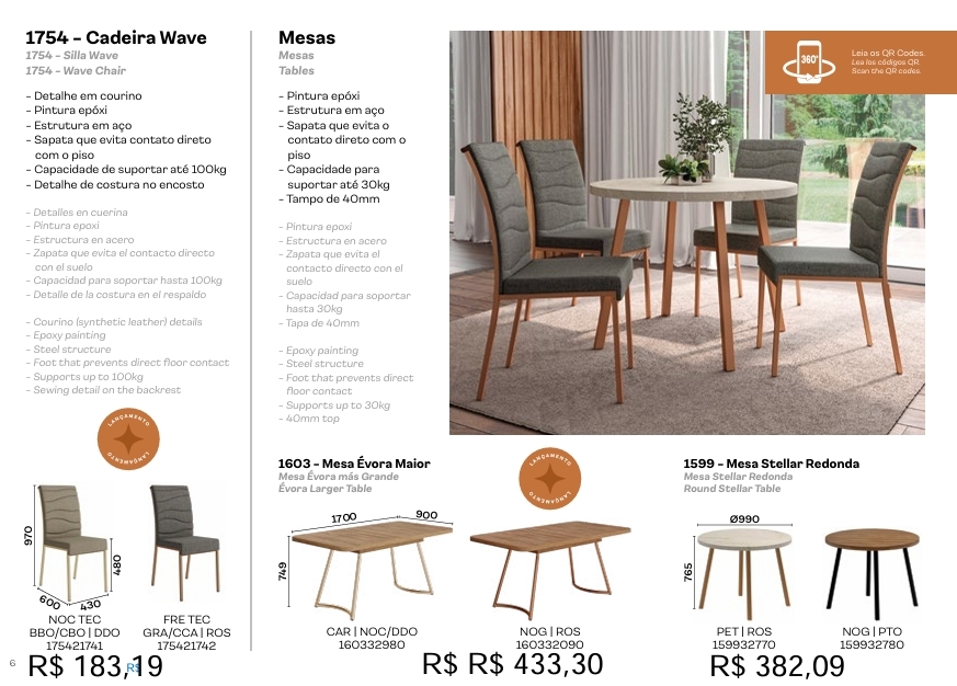 Conjunto Sala de Jantar | Cadeira Wave - Mesas Stellar e a Évora | Carraro | Venda: +60% 0925