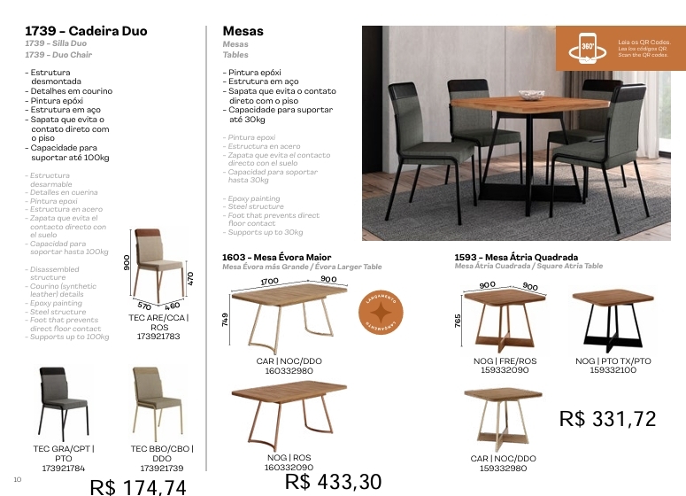 Conjunto Sala de Jantar | Cadeira Duo - Mesas Átria e Évora | Carraro | Venda: +60% 0925