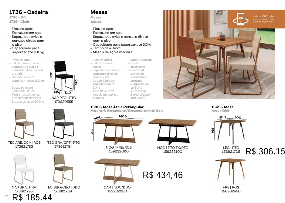 Conjunto Sala de Jantar | Cadeira - Mesas Átria | Carraro | Venda: +60% 0925