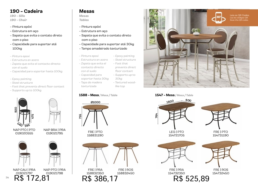 Conjunto Sala de Jantar | Cadeira - Mesas | Carraro | Venda: +60% 0925