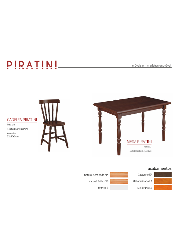 Conjunto Mesa Piratini 125 c/ 04 Cadeiras | Piratini