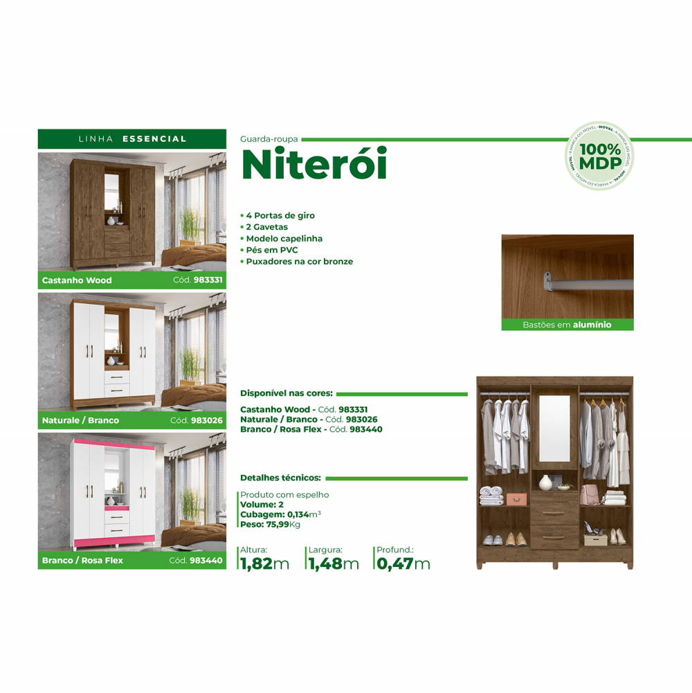 PREÇO + BARATO DO BRASIL | Roupeiro Niterói 4 Portas E 2 Gavetas | L 1,48 | Moval