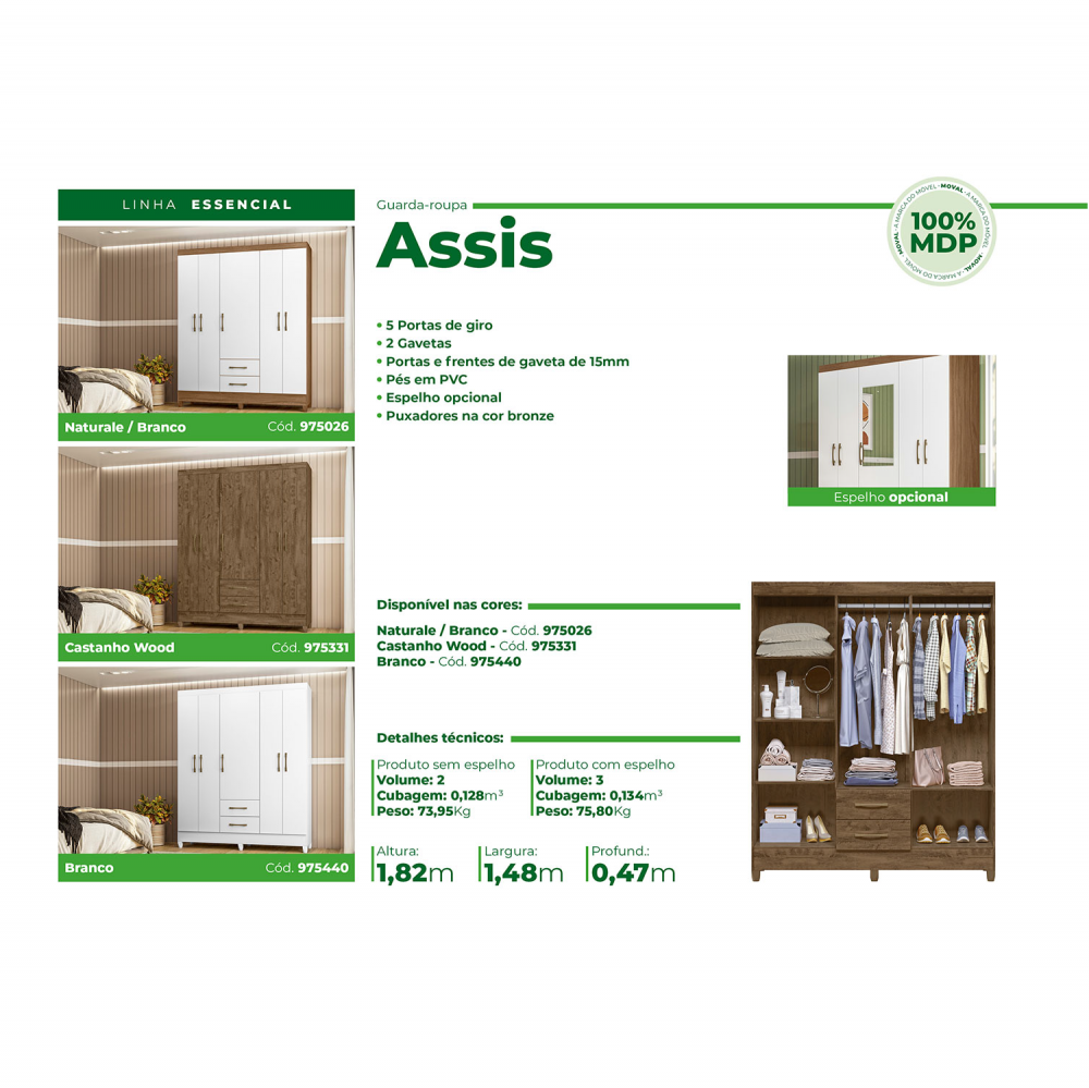 PREÇO + BARATO DO BRASIL | Roupeiro Assis 5 Portas e 2 Gavetas | L 1,48 | Moval