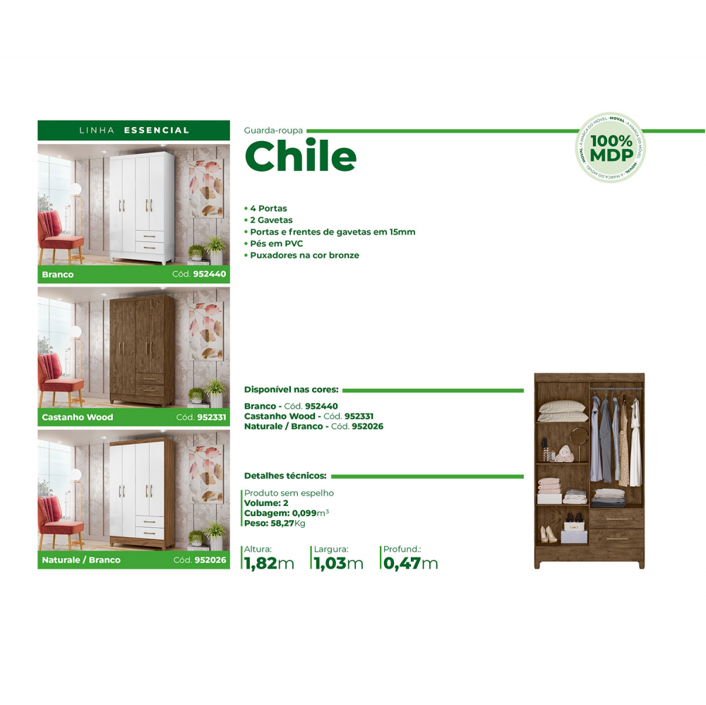 PREÇO + BARATO DO BRASIL | Roupeiro Chile 4 Portas E 2 Gavetas | L 1,03 | Moval