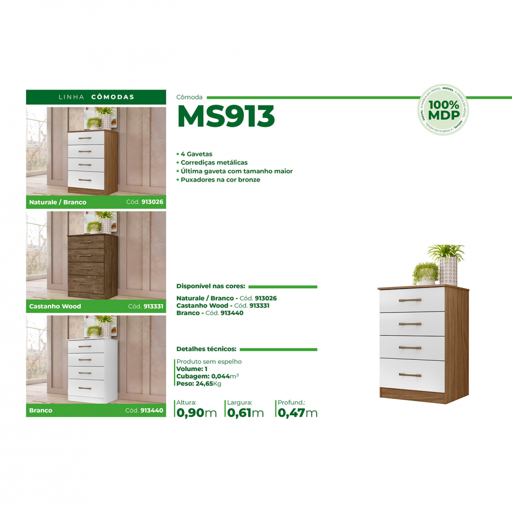 PREÇO + BARATO DO BRASIL | Cômoda MS913 4 Gavetas | L 0,61 | Moval